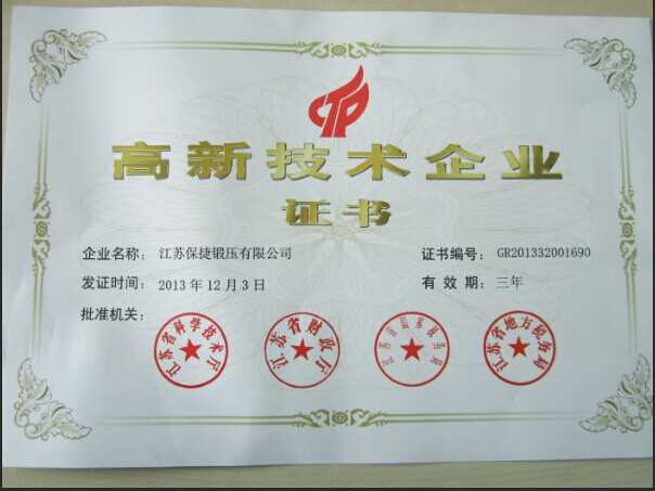 江蘇保捷鍛壓有限公司資信等級為AAA級